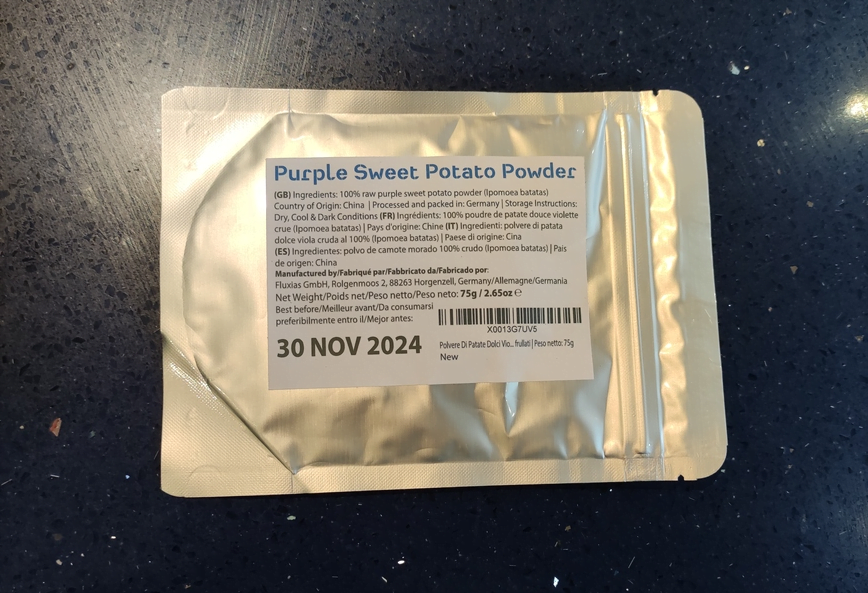 - Purple Sweet potato: En España al Sweet potato se le conoce como batata o boniato. Pues esta es una variedad de la batata. Tiene un sabor parecido al Taro pero más dulce. El resultado dará un color morado oscuro.